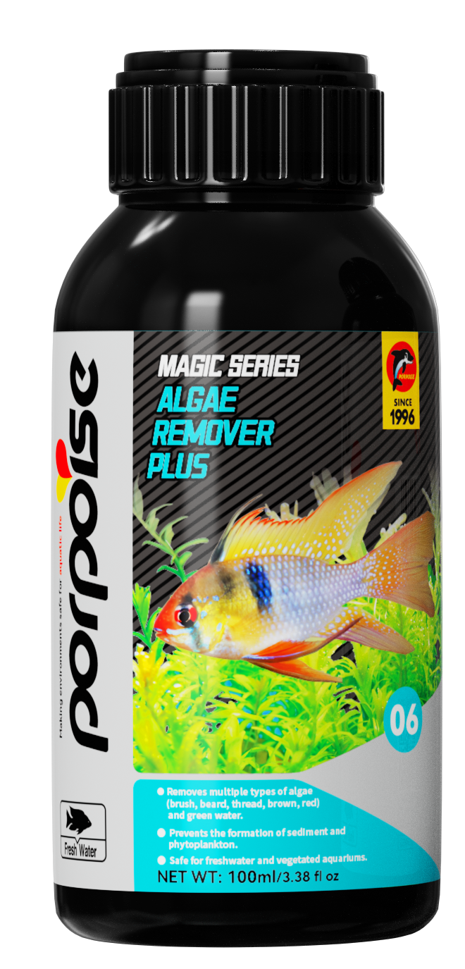 Algae Remover Plus es un producto de la serie Magic de Porpoise. Diseñado para eliminar algas y mejorar la calidad del agua. Este tratamiento disuelve la materia orgánica, previene la acumulación de algas pegajosas, fitoplancton y crea un ambiente acuático más saludable. Además de su acción preventiva, elimina eficazmente las algas de pincel, barba, hilo, marrones, rojas, lodo, agua verde y barro. Es seguro para acuarios con plantas si se aplica correctamente.